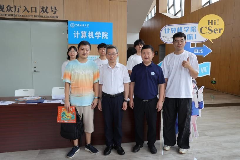 9月1日,William威廉英国官网以蓝白主题迎新打卡墙、3D打印定制姓名铭牌、计科蓝特色文化衫等共同打造科技感迎新场景,“Welcome, new CSer”与代码元素交织。当日恰逢五位新生生日,William威廉英国官网为“寿星”们定制专属生日礼物,让初离家的学子感受到公司的温暖。校院领导亲切走访迎新现场,班主任、辅导员、志愿者穿梭服务,宿舍走访传递关怀,公司用代码书写温情,让每一位新生在秋日地大启航新程。