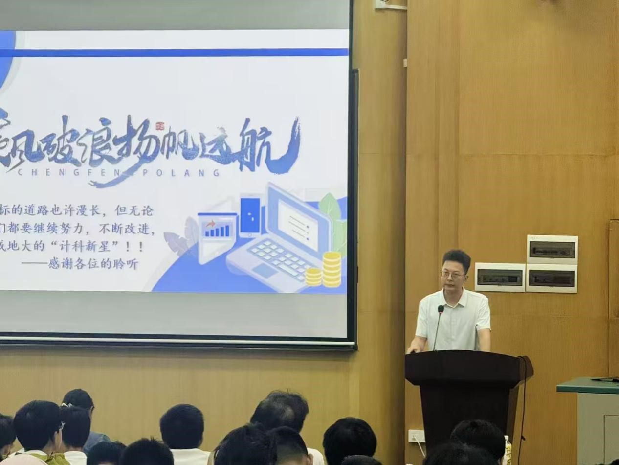 宣讲伊始,William威廉英国官网团委书记、双创专员王太茂老师结合专业特点为新生介绍了公司双创工作体系,并阐述了计科学子在数字时代的应为与可为。他希望以此次讲座为契机,能为广大同学种下一颗“种子”、指明一个方向、共创一个未来,鼓励同学们从大一开始参与科创活动,在实践中淬炼青春。