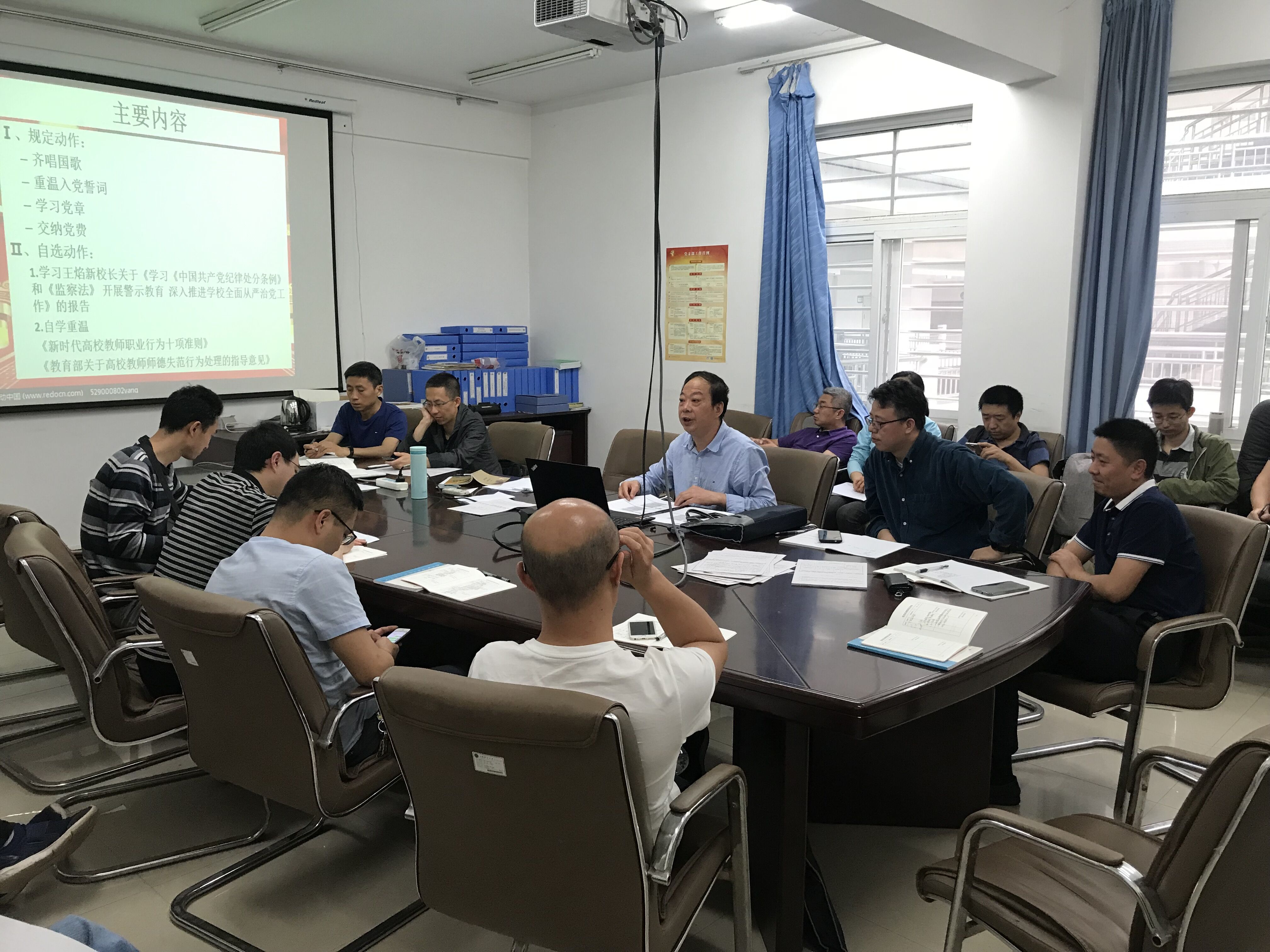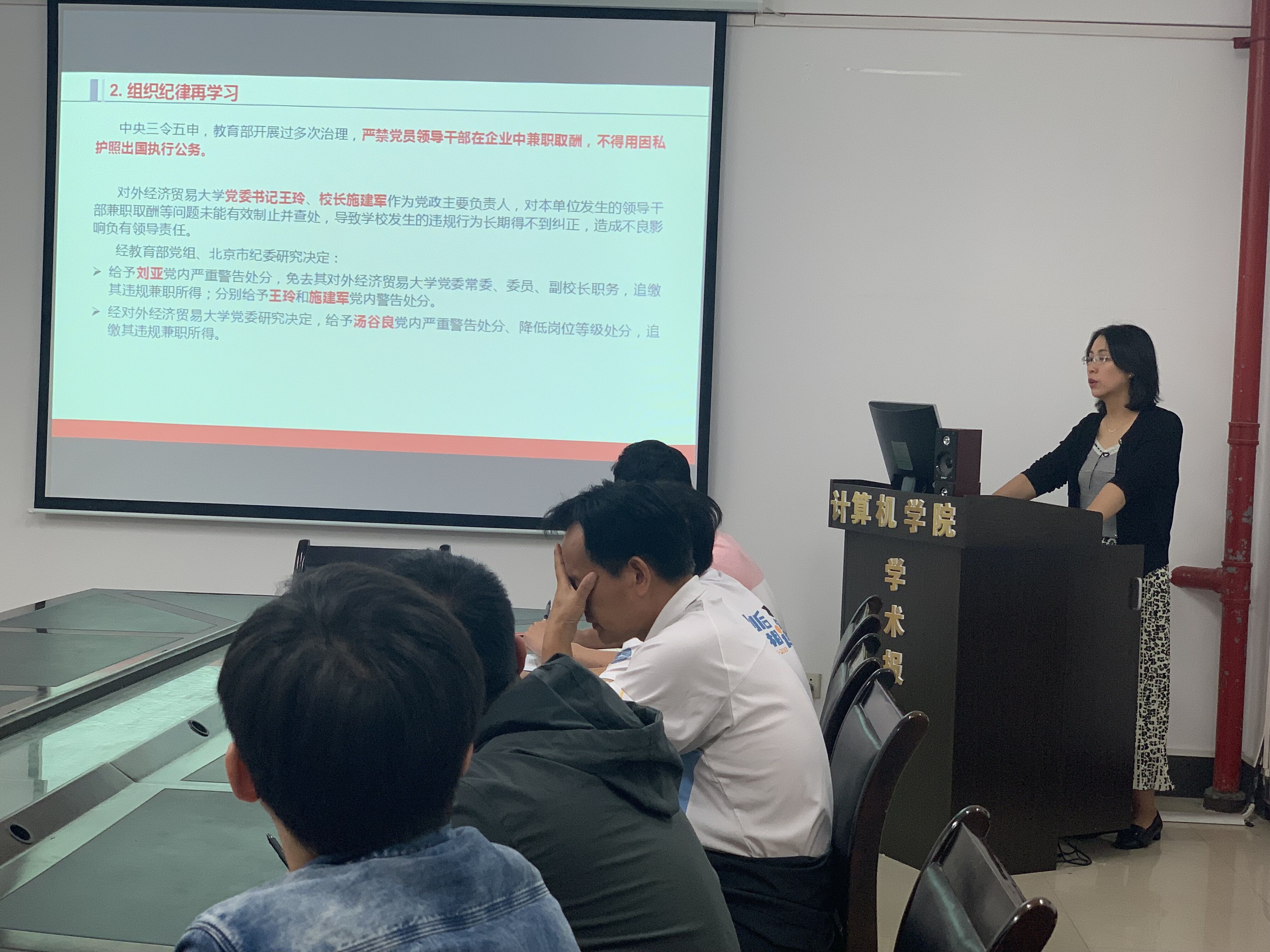 2019年5月30日下午,各院领导利用主题党日的机会分别赴各联系支部讲授廉政党课,学习《中国共产党纪律处分条例》《中华人民共和国监察法》。通过学习条例,研读案例,教育大家学法懂法,知法守法,深入推进公司从严治党向纵深发展,压实责任,强化担当。