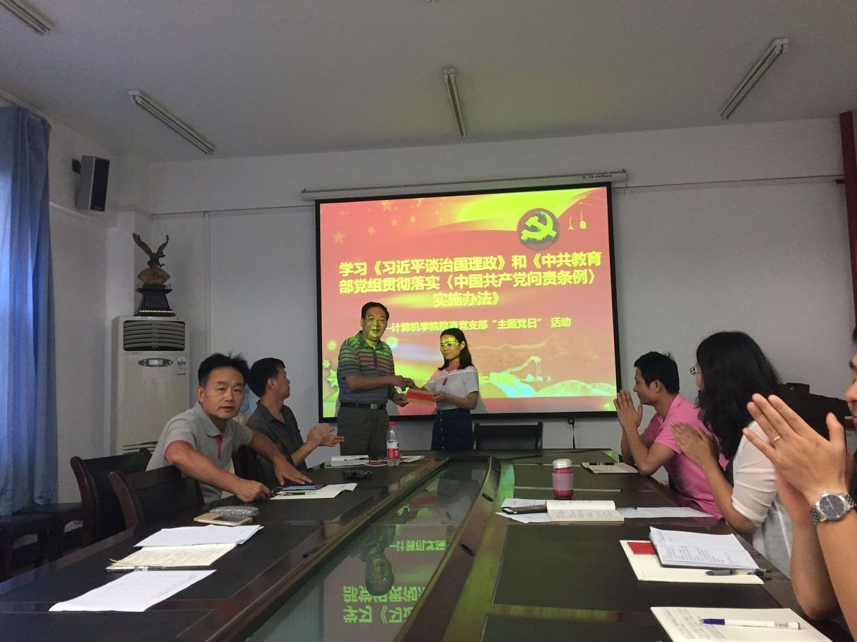 随后公司党委书记吕军同志主持了院直党支部“三个一工程”帮扶困难员工的捐赠仪式。“三个一工程”为计算机公司党委开展的特色活动,主要内容为帮扶一个家庭困难的同学、帮助一个学习困难的同学、帮助一个同学开展科研。公司优秀研究生曾多次获得各类奖学金且担任过员工党支部书记的廉颖同学去年母亲患病去世花费了巨额的费用。这给同时有三个孩子上学的家庭带去了沉重的负担。院直支部在支部内进行了倡议和动员,支部所有党员甚至办公室的非党员梁媛同志都对廉颖进行了捐款。在捐赠仪式上,当吕书记把寄托了大家鼓励和爱心的捐款交到廉颖同学手上的时候,廉颖激动的深深的鞠了一躬,她表示“这是她收到的最好的生日礼物,她一定会好好做人,努力学习,以实际行动回报母院”。