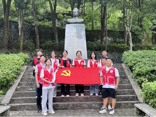 纸上得来终觉浅,绝知此事要躬行。计科先锋宣讲团来到何功伟村、鄂西特委旧址和叶挺纪念馆。一百余级台阶见证了何功伟烈士的不屈与无畏,《狱中歌声》谱写了他的忠诚与决心,囚居软化不了叶挺将军的钢铁意志,《囚歌》方显英雄志气。在党的光辉照耀下,团队成员不禁在纪念碑下展开党旗,宣读入党誓词,以抒心中慷慨激昂的爱国情怀。