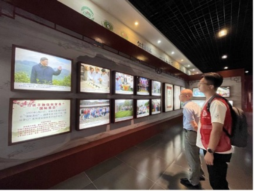 从会谈的遐想走出,宣恩县博物馆陈列的文物让宣讲团成员们对宣恩历史文化有了更加深刻的认识,走进宣恩风情展厅,大家深刻感受到了绿色宣恩的魅力;与历史文化展厅对话,昔日盛景仿佛浮于眼前;于民族民俗展厅之中,被多彩宣恩所感染。在宣恩风情展厅中流连,一幅贡茶之乡、绿色宣恩的宏伟蓝图已然在擘画,激励着新时代青年勇毅前行。