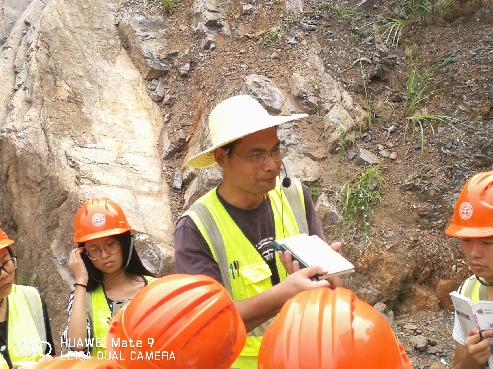 在教学过程中,每天都跟随队伍一起出发,除了负责好后勤、安全等事宜外,在教学路线、教学点上,与带班老师一起配合、结合专业建设需要讲授地质知识,员工都说:听郭老师、汪老师、张老师三位像讲故事、讲相声一样就让我们学习到了知识。