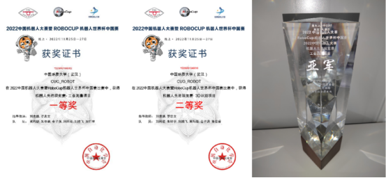 “2022年中国机器人大赛暨RoboCup机器人世界杯中国赛”(简称:中国机器人大赛)落下帷幕,公司参加了两个项目——先进视觉赛(包括工业测量项目和3D识别项目)、FIRA小型组-仿真赛(包括5V5子项和11V11子项)。在激烈角逐下,刘袁缘、罗忠文两位老师带领研究生刘柯君、黄玙璇与本科生朱佳睿、朱轩宇、金子潇、刘腾飞,获得机器人先进视觉赛-工业测量项目一等奖,机器人先进视觉赛-3D识别项目二等奖。杨林权、罗忠文两位老师带领本科生蔄宇飞、曾逸飞、刘志鑫、叶礼鸣获得FIRA小型组-仿真赛-5V5子项一等奖,FIRA小型组-仿真赛-11V11子项一等奖。两支团队回忆比赛历程,将奋斗故事与成长收获分享给大家。