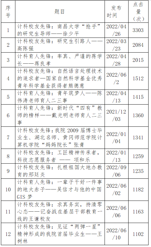表一:公司官网部分“计科先锋”事迹点击量统计表