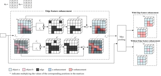 针对上述问题,本研究构建了一个矿区精细占地类型遥感智能解译框架模型(EG-UNet),该模型在增强矿山占地特征的同时,能够捕获其长距离信息。该框架包括两个主要模块:1)边缘特征增强模块。矿山占地边缘相较于空间位置,包含更关键的遥感图像敏感信息。因此,本研究在特征提取过程中,基于权重矩阵对边缘进行特征增强,进而更好地保留这些特征;2长距离特征提取模块。构建长距离特征提取模块,有助于获取矿山占地小面积图斑特征。本研究通过图卷积网络来捕获长距离特征,并应用卷积神经网络来学习图的构造。
