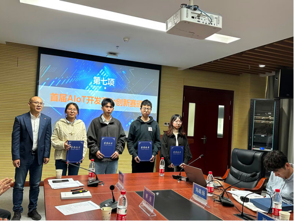 陈虹雨经理介绍了小米实训箱平台。周茂华总经理向公司四位同学颁发了2022年AloT开发平台创新赛获奖证书。