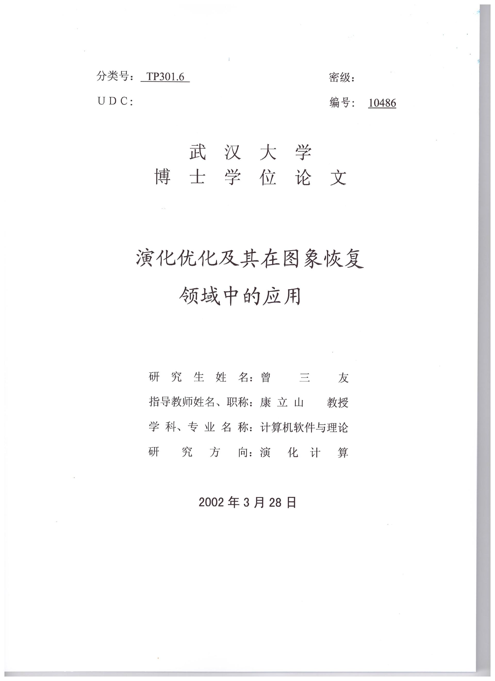 演化优化及其在图象恢复领域中的应用 |
